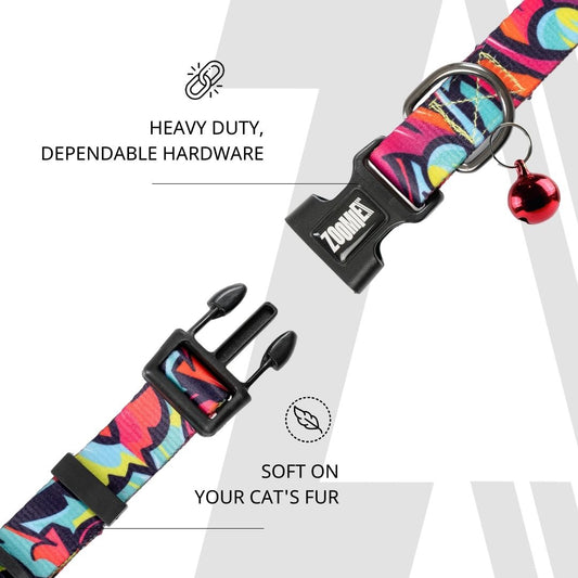 Zoomiez Printed Cat Collar with Bell - Bolt