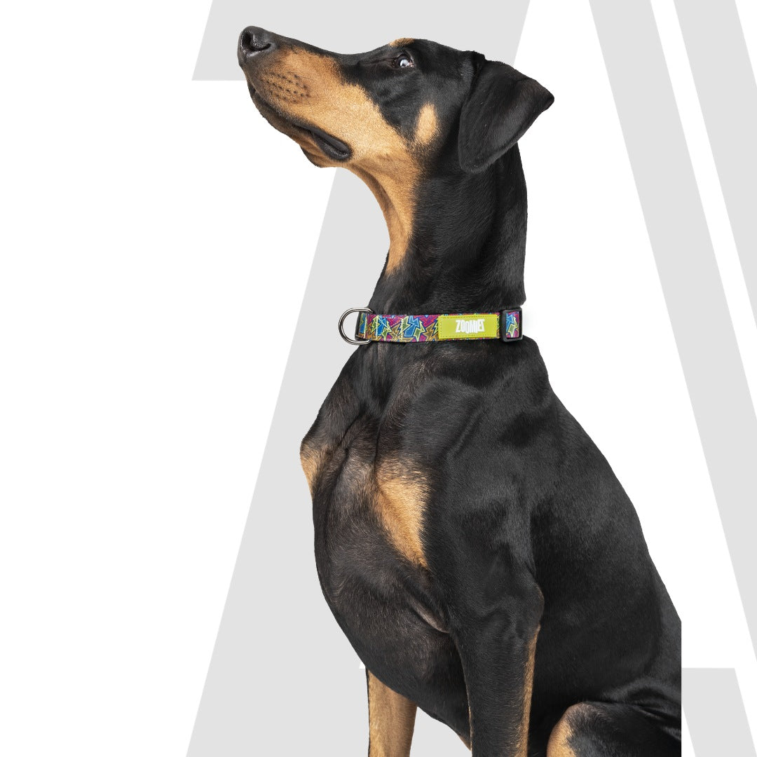 Designed for everyday wear, Zoomiez eye-catching printed collars combine comfort, security and attitude. These collars are made with durable, super soft high-density polyester that is made to last and won't fade or lose brightness over time. It provides good stability and will look snazzy on dogs of all breeds and ages.
